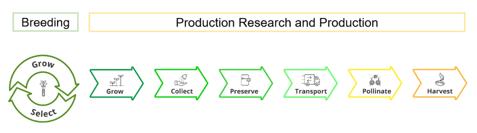 When we first collaborated with a customer on this topic, our proven recipes for pollen supply chain optimization did not apply anymore, and we had to have a closer look to the very beginning of the chain. To the breeding and growing part.
